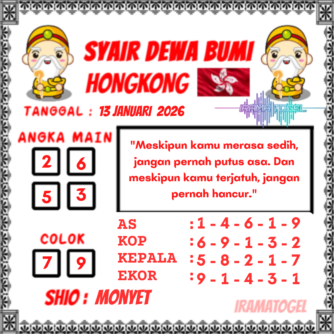 IramaTogel menghadirkan syair togel hongkong yang bisa anda gunakan sebagai media prediksi togel dengan akurat di Indonesia. Hal ini tersampaikan, para pemain yang bermain togel hongkong akan dipermudah untuk bisa menebak angka togel hongkong dari syair togel ini. IramaTogel telah memperhitungkan banyak fitur yang dapat mendukung untuk bisa menebak angka togel hongkong dengan benar. Maka dari itu silahkan untuk berlangganan dengan kami buat mendapatkan banyak bocoran nomor keluaran togel hongkong disini.