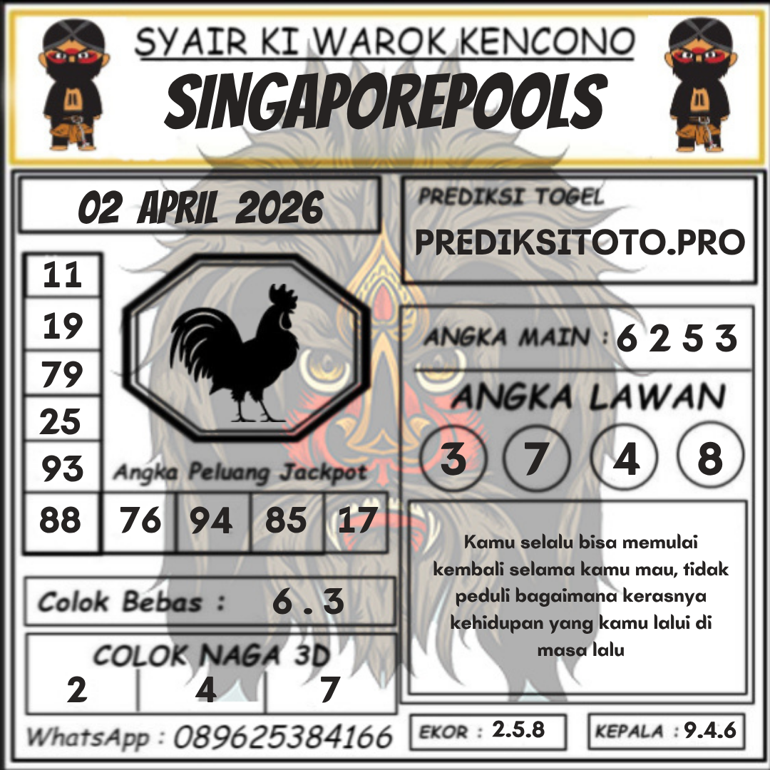 Syair togel Singapore akan tersurat dalam tiap kalimatnya untuk keluarkan prediksi angka pada togel singapore yang nanti akan ada. Syair-syair togel singapore umumnya mempunyai banyak arti tersembunyi dan jadi teka teki berkenaan angka yang dapat di definisikan oleh pembacanya atau pemain togel singapore. Ada cara-cara yang dapat kita kerjakan dalam langkah menerka makna dalam prediksi syair togel Singapore untuk menjadi angka prediksi kita. Yok langsung kita mencari tahu di bawah ini.
