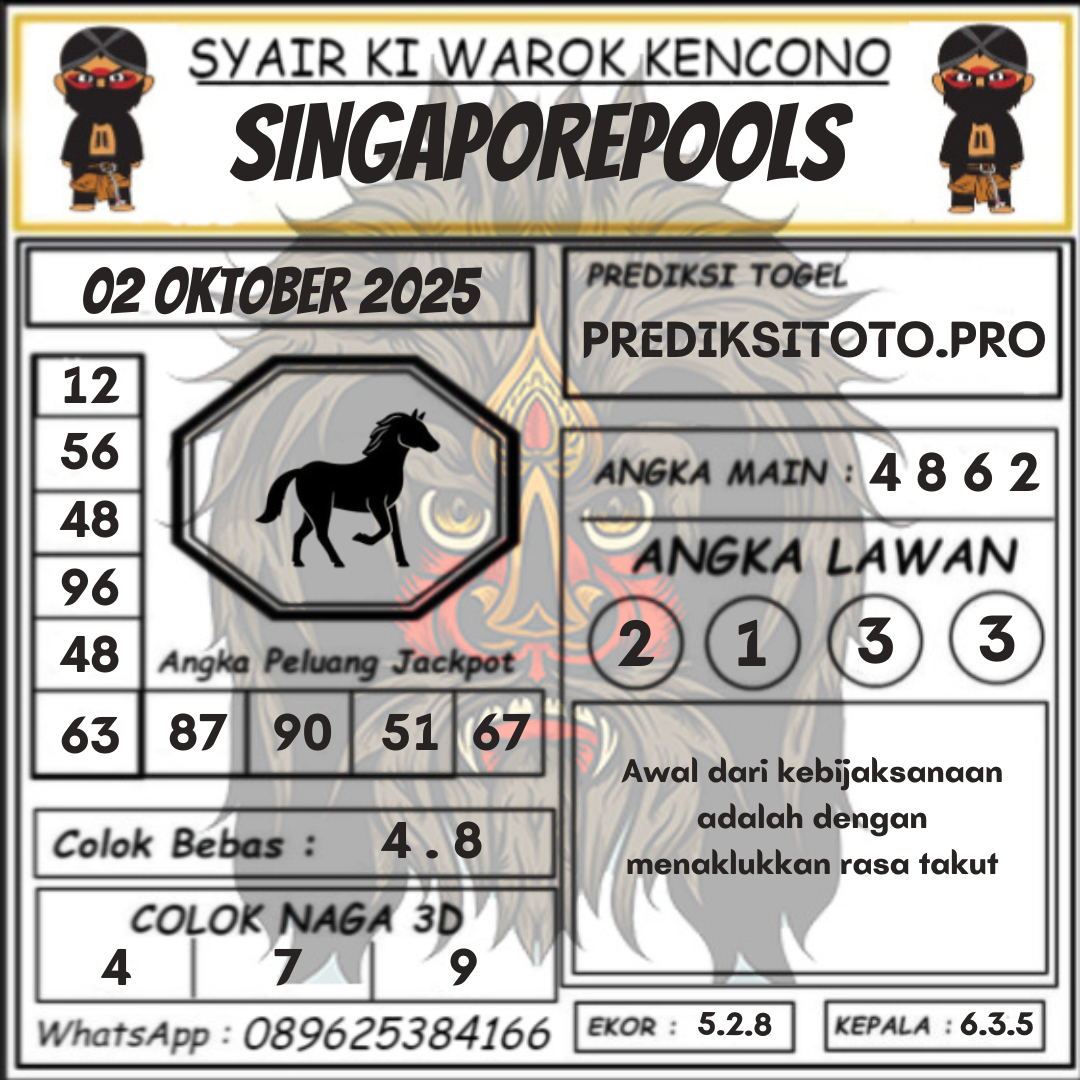 Syair togel Singapore akan tersurat dalam tiap kalimatnya untuk keluarkan prediksi angka pada togel singapore yang nanti akan ada. Syair-syair togel singapore umumnya mempunyai banyak arti tersembunyi dan jadi teka teki berkenaan angka yang dapat di definisikan oleh pembacanya atau pemain togel singapore. Ada cara-cara yang dapat kita kerjakan dalam langkah menerka makna dalam prediksi syair togel Singapore untuk menjadi angka prediksi kita. Yok langsung kita mencari tahu di bawah ini.