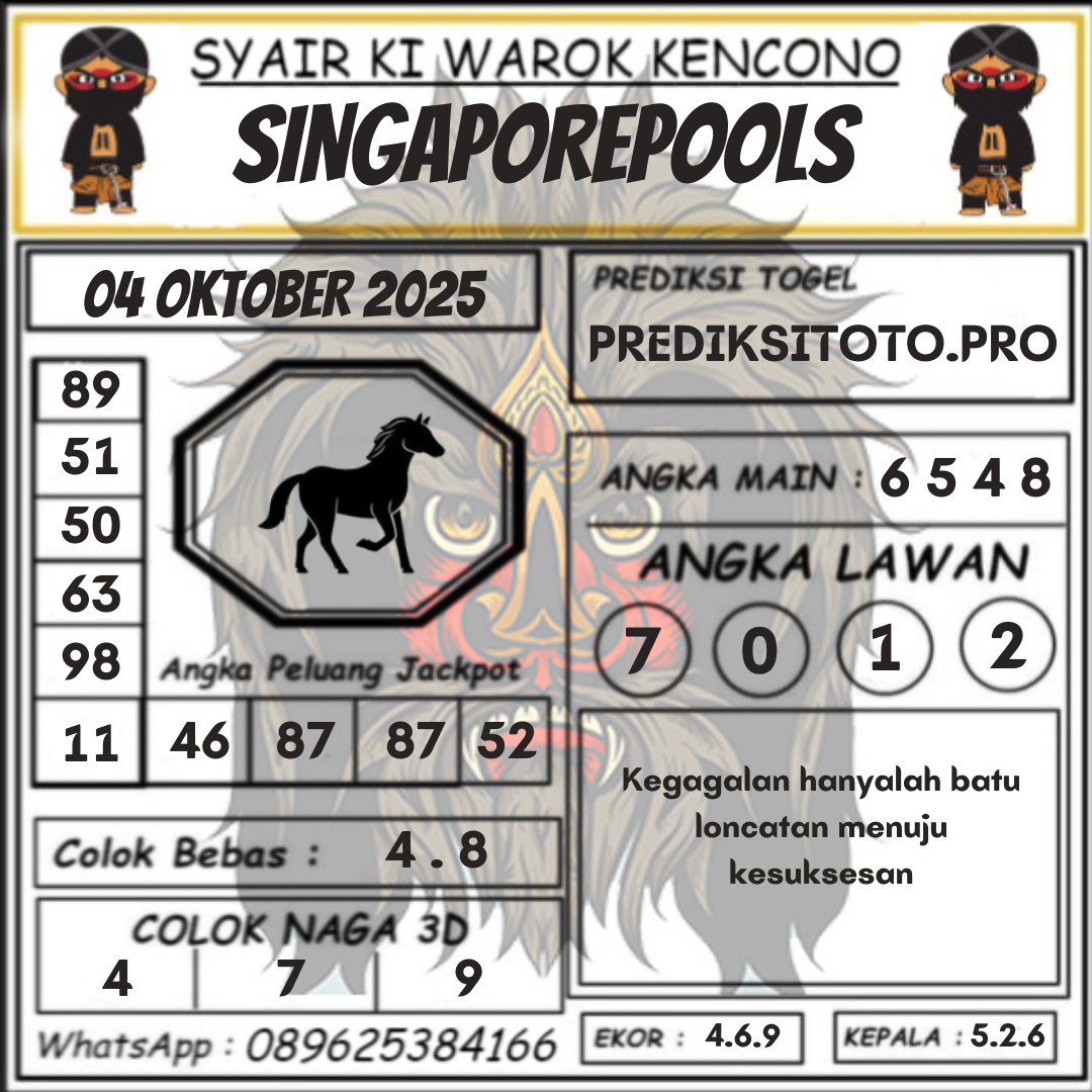 Syair togel Singapore akan tersurat dalam tiap kalimatnya untuk keluarkan prediksi angka pada togel singapore yang nanti akan ada. Syair-syair togel singapore umumnya mempunyai banyak arti tersembunyi dan jadi teka teki berkenaan angka yang dapat di definisikan oleh pembacanya atau pemain togel singapore. Ada cara-cara yang dapat kita kerjakan dalam langkah menerka makna dalam prediksi syair togel Singapore untuk menjadi angka prediksi kita. Yok langsung kita mencari tahu di bawah ini.