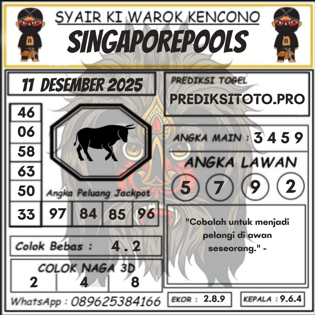Syair togel Singapore akan tersurat dalam tiap kalimatnya untuk keluarkan prediksi angka pada togel singapore yang nanti akan ada. Syair-syair togel singapore umumnya mempunyai banyak arti tersembunyi dan jadi teka teki berkenaan angka yang dapat di definisikan oleh pembacanya atau pemain togel singapore. Ada cara-cara yang dapat kita kerjakan dalam langkah menerka makna dalam prediksi syair togel Singapore untuk menjadi angka prediksi kita. Yok langsung kita mencari tahu di bawah ini.