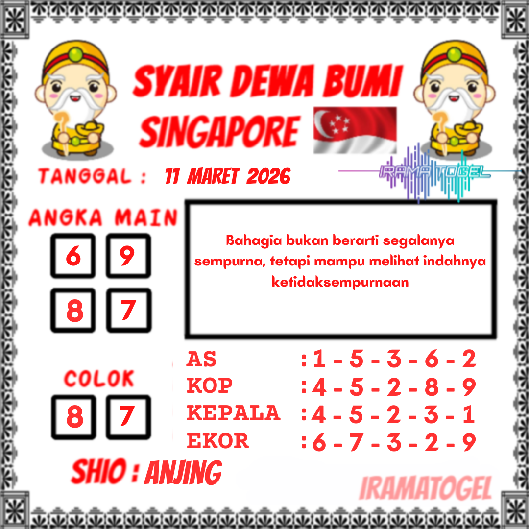 Syair togel Singapore akan tersurat dalam tiap kalimatnya untuk keluarkan prediksi angka pada togel singapore yang nanti akan ada. Syair-syair togel singapore umumnya mempunyai banyak arti tersembunyi dan jadi teka teki berkenaan angka yang dapat di definisikan oleh pembacanya atau pemain togel singapore. Ada cara-cara yang dapat kita kerjakan dalam langkah menerka makna dalam prediksi syair togel Singapore untuk menjadi angka prediksi kita. Yok langsung kita mencari tahu di bawah ini.