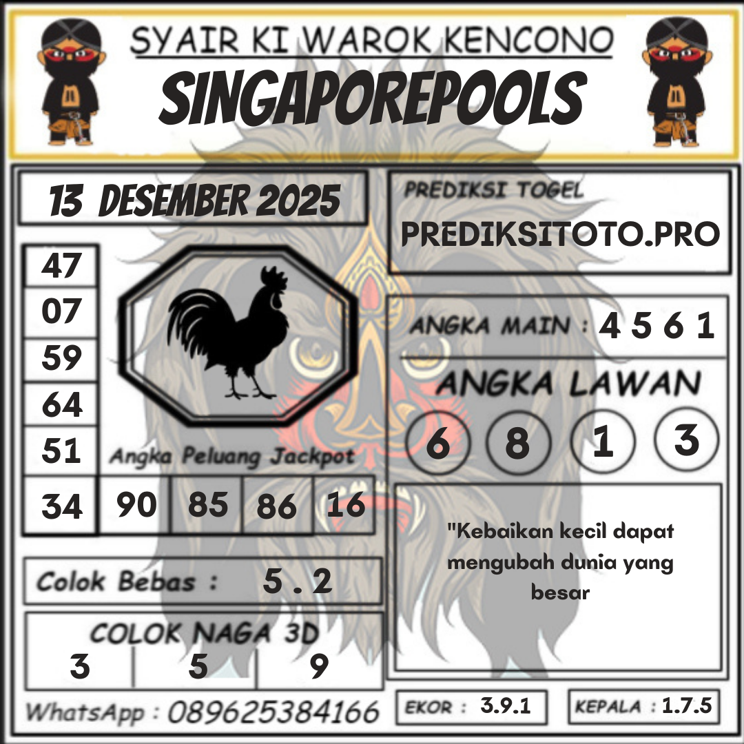 Syair togel Singapore akan tersurat dalam tiap kalimatnya untuk keluarkan prediksi angka pada togel singapore yang nanti akan ada. Syair-syair togel singapore umumnya mempunyai banyak arti tersembunyi dan jadi teka teki berkenaan angka yang dapat di definisikan oleh pembacanya atau pemain togel singapore. Ada cara-cara yang dapat kita kerjakan dalam langkah menerka makna dalam prediksi syair togel Singapore untuk menjadi angka prediksi kita. Yok langsung kita mencari tahu di bawah ini.