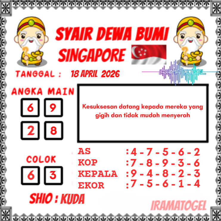 Syair togel Singapore akan tersurat dalam tiap kalimatnya untuk keluarkan prediksi angka pada togel singapore yang nanti akan ada. Syair-syair togel singapore umumnya mempunyai banyak arti tersembunyi dan jadi teka teki berkenaan angka yang dapat di definisikan oleh pembacanya atau pemain togel singapore. Ada cara-cara yang dapat kita kerjakan dalam langkah menerka makna dalam prediksi syair togel Singapore untuk menjadi angka prediksi kita. Yok langsung kita mencari tahu di bawah ini.