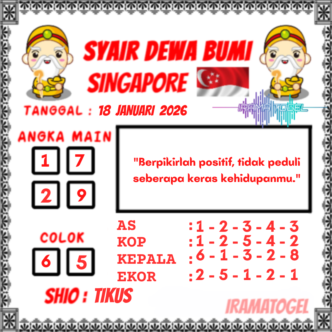 Syair togel Singapore akan tersurat dalam tiap kalimatnya untuk keluarkan prediksi angka pada togel singapore yang nanti akan ada. Syair-syair togel singapore umumnya mempunyai banyak arti tersembunyi dan jadi teka teki berkenaan angka yang dapat di definisikan oleh pembacanya atau pemain togel singapore. Ada cara-cara yang dapat kita kerjakan dalam langkah menerka makna dalam prediksi syair togel Singapore untuk menjadi angka prediksi kita. Yok langsung kita mencari tahu di bawah ini.