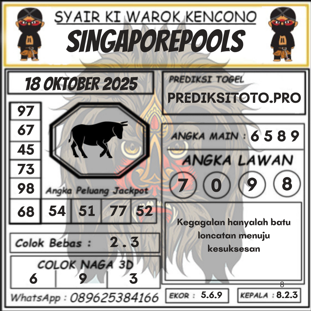 Syair togel Singapore akan tersurat dalam tiap kalimatnya untuk keluarkan prediksi angka pada togel singapore yang nanti akan ada. Syair-syair togel singapore umumnya mempunyai banyak arti tersembunyi dan jadi teka teki berkenaan angka yang dapat di definisikan oleh pembacanya atau pemain togel singapore. Ada cara-cara yang dapat kita kerjakan dalam langkah menerka makna dalam prediksi syair togel Singapore untuk menjadi angka prediksi kita. Yok langsung kita mencari tahu di bawah ini.