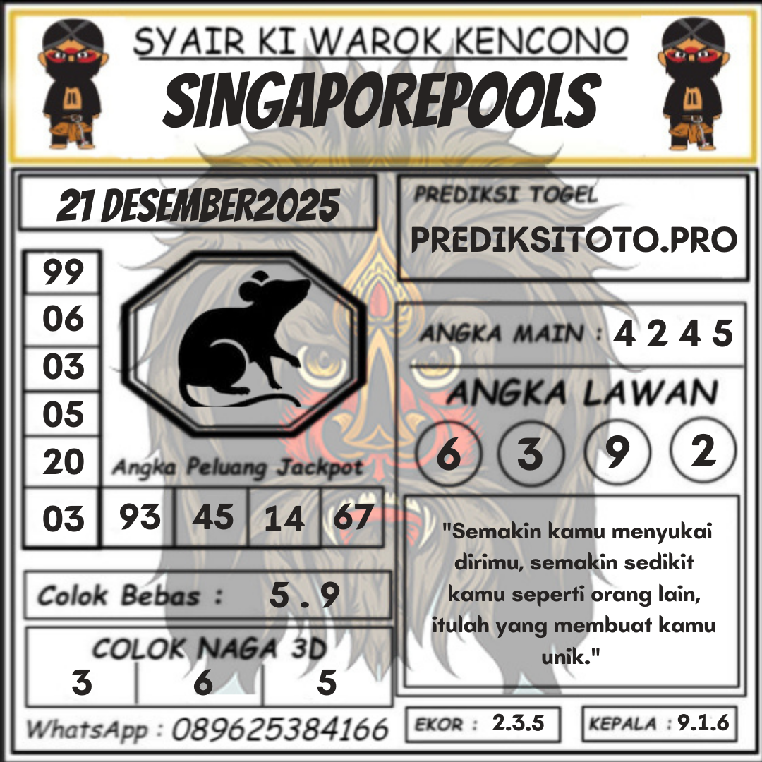 Syair togel Singapore akan tersurat dalam tiap kalimatnya untuk keluarkan prediksi angka pada togel singapore yang nanti akan ada. Syair-syair togel singapore umumnya mempunyai banyak arti tersembunyi dan jadi teka teki berkenaan angka yang dapat di definisikan oleh pembacanya atau pemain togel singapore. Ada cara-cara yang dapat kita kerjakan dalam langkah menerka makna dalam prediksi syair togel Singapore untuk menjadi angka prediksi kita. Yok langsung kita mencari tahu di bawah ini.