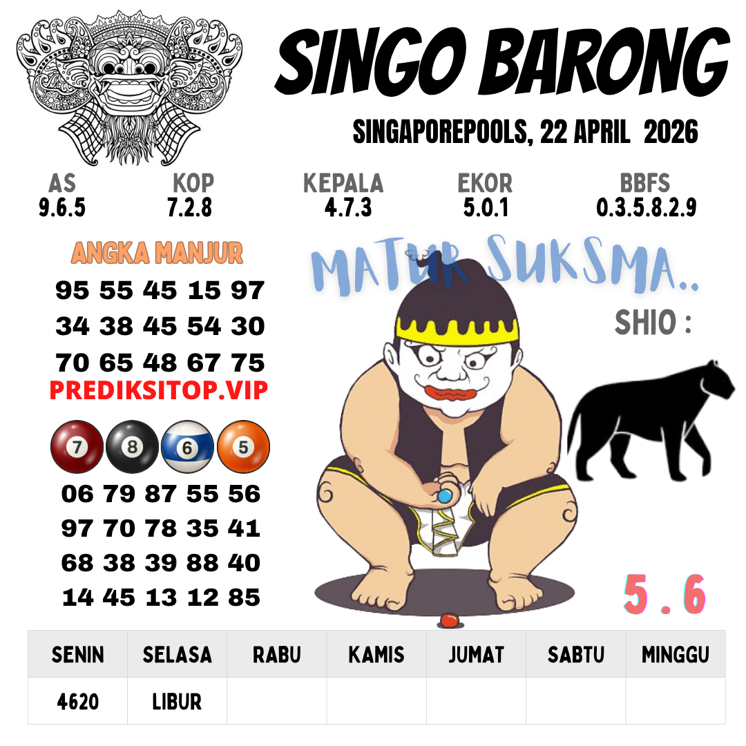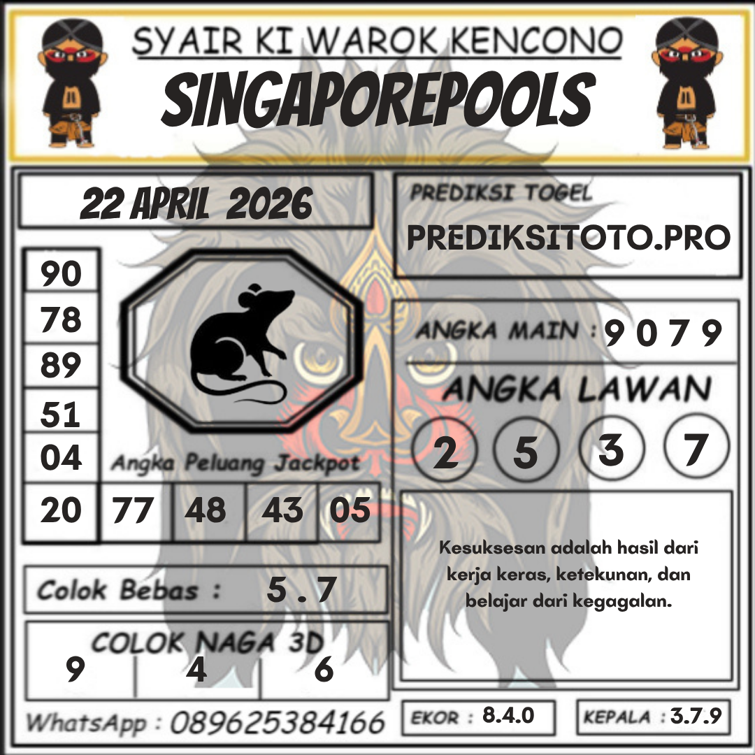Syair togel Singapore akan tersurat dalam tiap kalimatnya untuk keluarkan prediksi angka pada togel singapore yang nanti akan ada. Syair-syair togel singapore umumnya mempunyai banyak arti tersembunyi dan jadi teka teki berkenaan angka yang dapat di definisikan oleh pembacanya atau pemain togel singapore. Ada cara-cara yang dapat kita kerjakan dalam langkah menerka makna dalam prediksi syair togel Singapore untuk menjadi angka prediksi kita. Yok langsung kita mencari tahu di bawah ini.