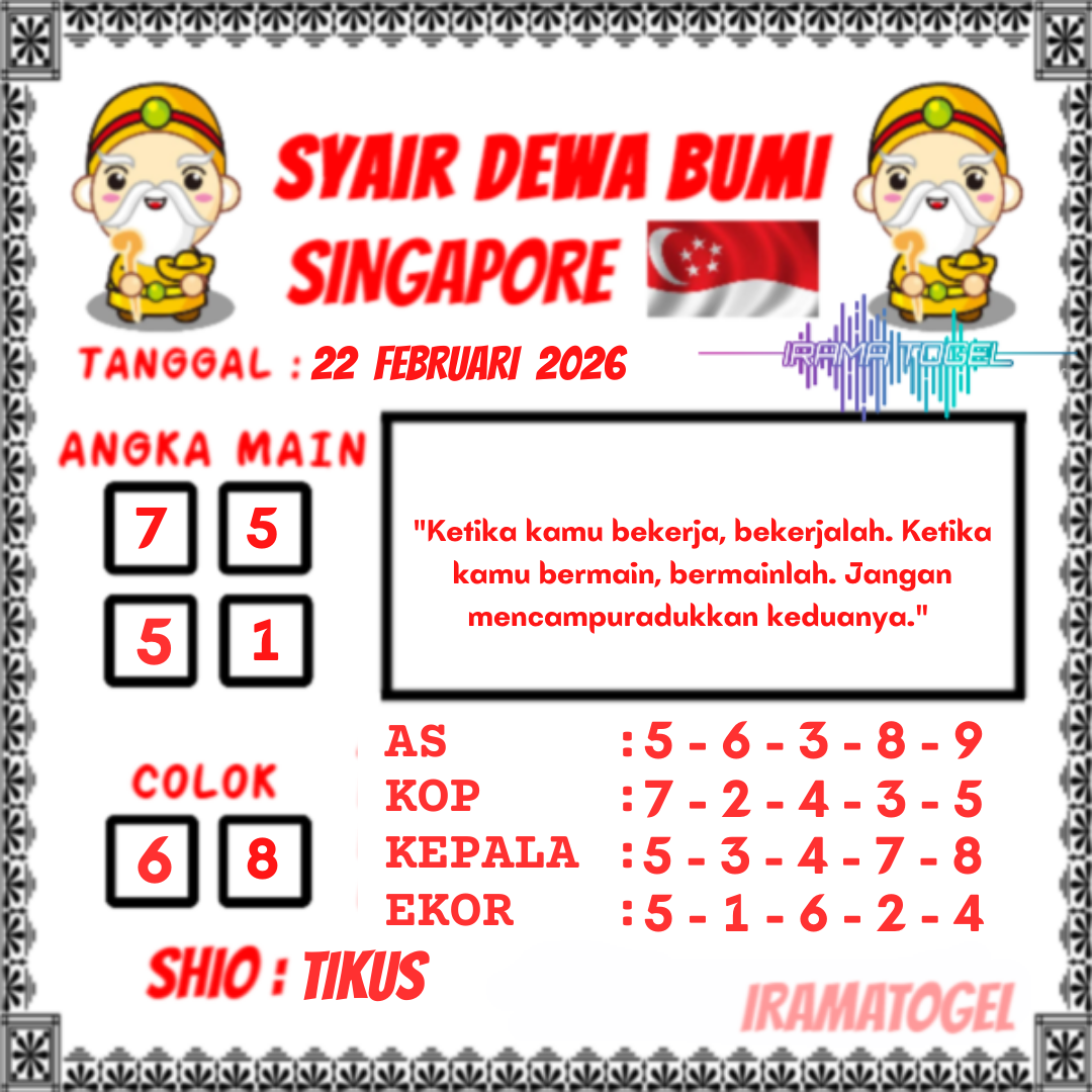 Syair togel Singapore akan tersurat dalam tiap kalimatnya untuk keluarkan prediksi angka pada togel singapore yang nanti akan ada. Syair-syair togel singapore umumnya mempunyai banyak arti tersembunyi dan jadi teka teki berkenaan angka yang dapat di definisikan oleh pembacanya atau pemain togel singapore. Ada cara-cara yang dapat kita kerjakan dalam langkah menerka makna dalam prediksi syair togel Singapore untuk menjadi angka prediksi kita. Yok langsung kita mencari tahu di bawah ini.