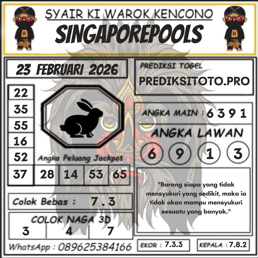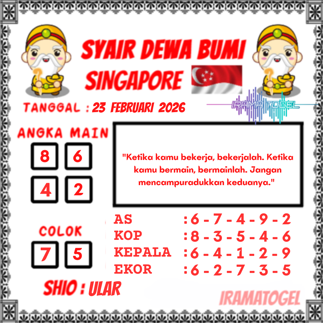 Syair togel Singapore akan tersurat dalam tiap kalimatnya untuk keluarkan prediksi angka pada togel singapore yang nanti akan ada. Syair-syair togel singapore umumnya mempunyai banyak arti tersembunyi dan jadi teka teki berkenaan angka yang dapat di definisikan oleh pembacanya atau pemain togel singapore. Ada cara-cara yang dapat kita kerjakan dalam langkah menerka makna dalam prediksi syair togel Singapore untuk menjadi angka prediksi kita. Yok langsung kita mencari tahu di bawah ini.