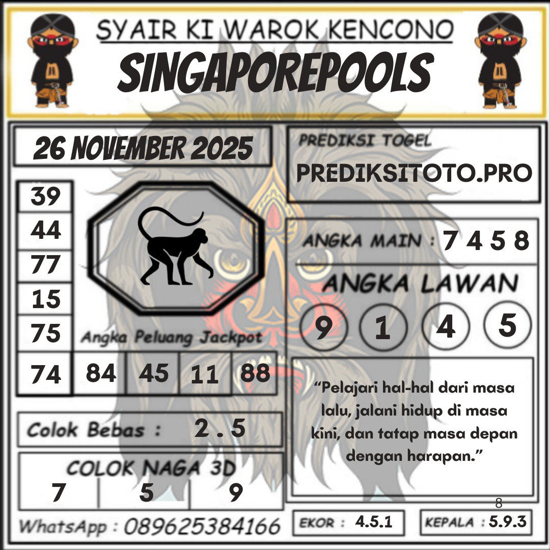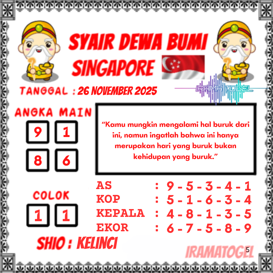 Syair togel Singapore akan tersurat dalam tiap kalimatnya untuk keluarkan prediksi angka pada togel singapore yang nanti akan ada. Syair-syair togel singapore umumnya mempunyai banyak arti tersembunyi dan jadi teka teki berkenaan angka yang dapat di definisikan oleh pembacanya atau pemain togel singapore. Ada cara-cara yang dapat kita kerjakan dalam langkah menerka makna dalam prediksi syair togel Singapore untuk menjadi angka prediksi kita. Yok langsung kita mencari tahu di bawah ini.