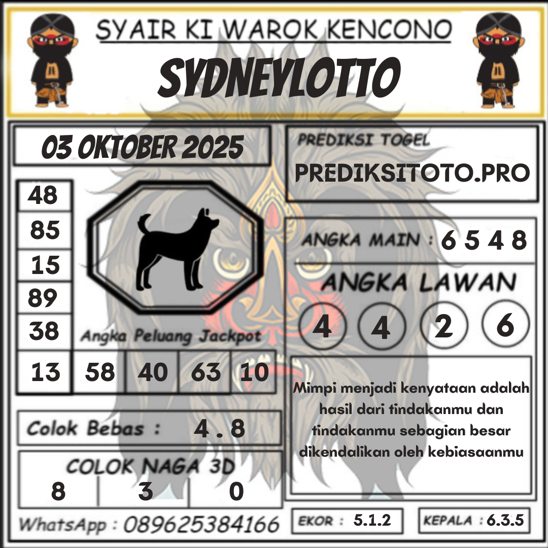 Syair togel Sydney akan tersurat dalam tiap kalimatnya untuk keluarkan prediksi angka pada togel sydney yang nanti akan ada. Syair-syair togel sydney umumnya mempunyai banyak arti tersembunyi dan jadi teka teki berkenaan angka yang dapat di definisikan oleh pembacanya atau pemain togel sydney. Ada cara-cara yang dapat kita kerjakan dalam langkah menerka makna dalam prediksi syair togel Sydney untuk menjadi angka prediksi kita. Yok langsung kita mencari tahu di bawah ini.