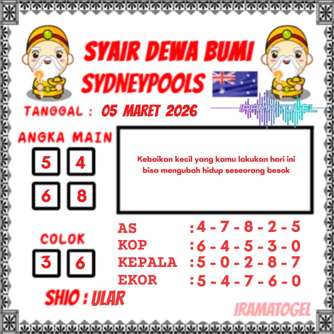 Para penggemar yang bermain judi togel online sydney, pastinya sudah memiliki trik sendiri untuk mendapatkan bocoran angka keluaran togel sydney hari ini. Jika anda senang bermain togel menggunakan data prediksi togel maka kamu bisa mengandalkanya dengan melihat syair togel sydney di IramaTogel. Kami selaku bandar judi togel online resmi dan terbesar telah menyediakan syair togel sydney yang benar-benar akurat dan jitu. Selain pasaran togel sydney, IramaTogel juga sudah menyiapkan pasaran togel terbesar lainnya yang bisa anda lihat disini.