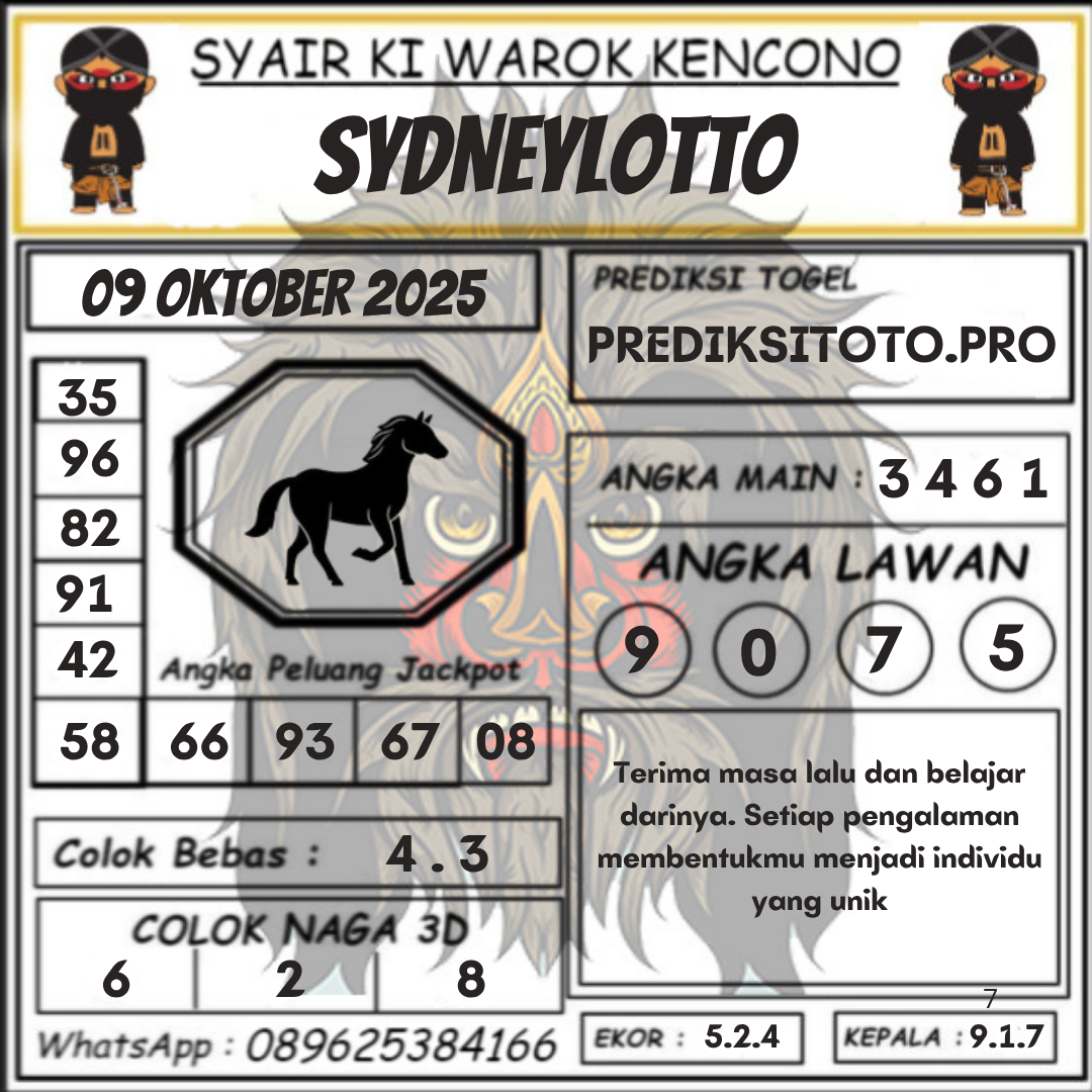 Syair togel Sydney akan tersurat dalam tiap kalimatnya untuk keluarkan prediksi angka pada togel sydney yang nanti akan ada. Syair-syair togel sydney umumnya mempunyai banyak arti tersembunyi dan jadi teka teki berkenaan angka yang dapat di definisikan oleh pembacanya atau pemain togel sydney. Ada cara-cara yang dapat kita kerjakan dalam langkah menerka makna dalam prediksi syair togel Sydney untuk menjadi angka prediksi kita. Yok langsung kita mencari tahu di bawah ini.