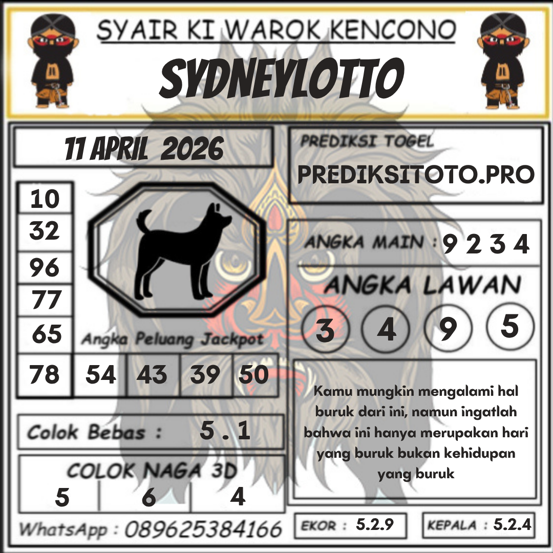 Syair togel Sydney akan tersurat dalam tiap kalimatnya untuk keluarkan prediksi angka pada togel sydney yang nanti akan ada. Syair-syair togel sydney umumnya mempunyai banyak arti tersembunyi dan jadi teka teki berkenaan angka yang dapat di definisikan oleh pembacanya atau pemain togel sydney. Ada cara-cara yang dapat kita kerjakan dalam langkah menerka makna dalam prediksi syair togel Sydney untuk menjadi angka prediksi kita. Yok langsung kita mencari tahu di bawah ini.