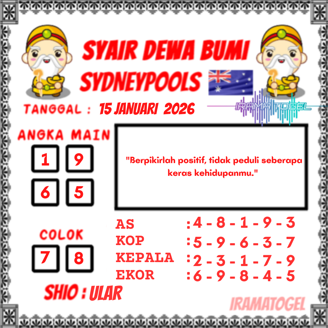 Para penggemar yang bermain judi togel online sydney, pastinya sudah memiliki trik sendiri untuk mendapatkan bocoran angka keluaran togel sydney hari ini. Jika anda senang bermain togel menggunakan data prediksi togel maka kamu bisa mengandalkanya dengan melihat syair togel sydney di IramaTogel. Kami selaku bandar judi togel online resmi dan terbesar telah menyediakan syair togel sydney yang benar-benar akurat dan jitu. Selain pasaran togel sydney, IramaTogel juga sudah menyiapkan pasaran togel terbesar lainnya yang bisa anda lihat disini.