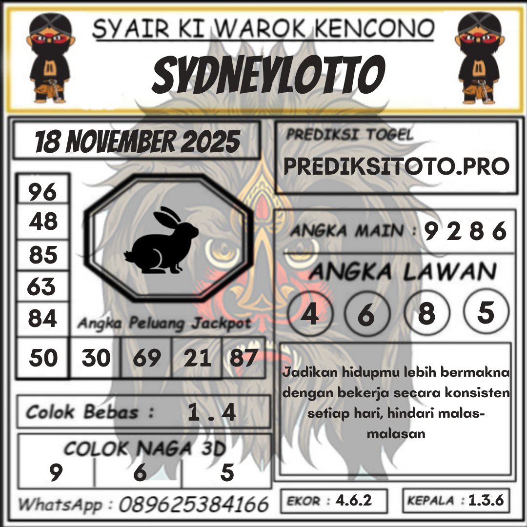 Syair togel Sydney akan tersurat dalam tiap kalimatnya untuk keluarkan prediksi angka pada togel sydney yang nanti akan ada. Syair-syair togel sydney umumnya mempunyai banyak arti tersembunyi dan jadi teka teki berkenaan angka yang dapat di definisikan oleh pembacanya atau pemain togel sydney. Ada cara-cara yang dapat kita kerjakan dalam langkah menerka makna dalam prediksi syair togel Sydney untuk menjadi angka prediksi kita. Yok langsung kita mencari tahu di bawah ini.