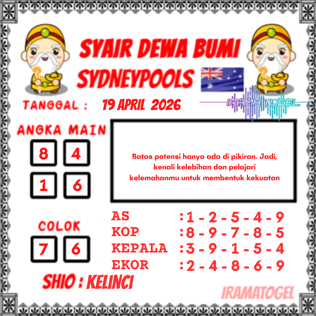 Syair togel Sydney akan tersurat dalam tiap kalimatnya untuk keluarkan prediksi angka pada togel sydney yang nanti akan ada. Syair-syair togel sydney umumnya mempunyai banyak arti tersembunyi dan jadi teka teki berkenaan angka yang dapat di definisikan oleh pembacanya atau pemain togel sydney. Ada cara-cara yang dapat kita kerjakan dalam langkah menerka makna dalam prediksi syair togel Sydney untuk menjadi angka prediksi kita. Yok langsung kita mencari tahu di bawah ini.