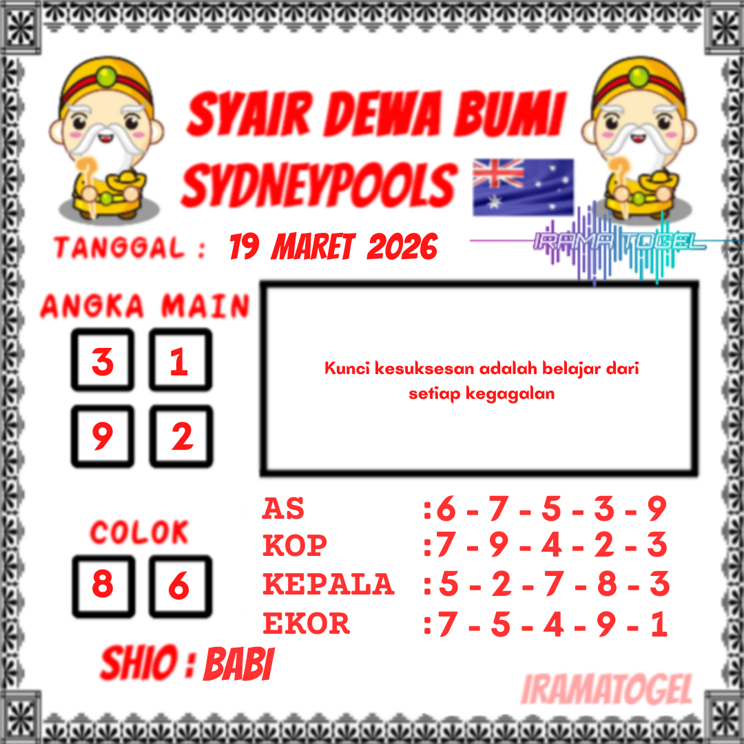 Syair togel Sydney akan tersurat dalam tiap kalimatnya untuk keluarkan prediksi angka pada togel sydney yang nanti akan ada. Syair-syair togel sydney umumnya mempunyai banyak arti tersembunyi dan jadi teka teki berkenaan angka yang dapat di definisikan oleh pembacanya atau pemain togel sydney. Ada cara-cara yang dapat kita kerjakan dalam langkah menerka makna dalam prediksi syair togel Sydney untuk menjadi angka prediksi kita. Yok langsung kita mencari tahu di bawah ini.