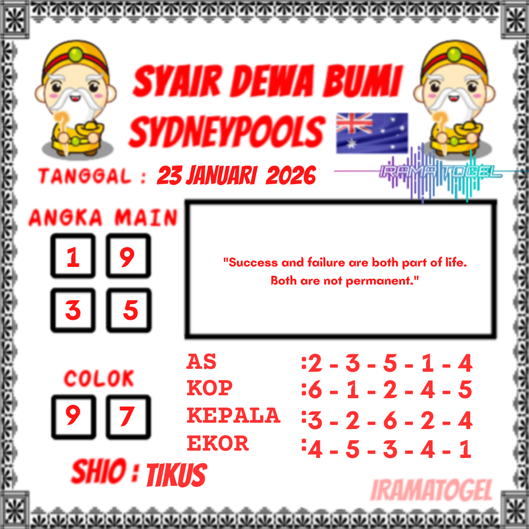 Syair togel Sydney akan tersurat dalam tiap kalimatnya untuk keluarkan prediksi angka pada togel sydney yang nanti akan ada. Syair-syair togel sydney umumnya mempunyai banyak arti tersembunyi dan jadi teka teki berkenaan angka yang dapat di definisikan oleh pembacanya atau pemain togel sydney. Ada cara-cara yang dapat kita kerjakan dalam langkah menerka makna dalam prediksi syair togel Sydney untuk menjadi angka prediksi kita. Yok langsung kita mencari tahu di bawah ini.