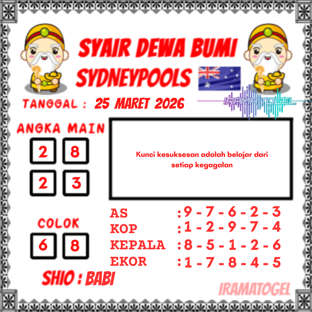 Syair togel Sydney akan tersurat dalam tiap kalimatnya untuk keluarkan prediksi angka pada togel sydney yang nanti akan ada. Syair-syair togel sydney umumnya mempunyai banyak arti tersembunyi dan jadi teka teki berkenaan angka yang dapat di definisikan oleh pembacanya atau pemain togel sydney. Ada cara-cara yang dapat kita kerjakan dalam langkah menerka makna dalam prediksi syair togel Sydney untuk menjadi angka prediksi kita. Yok langsung kita mencari tahu di bawah ini.