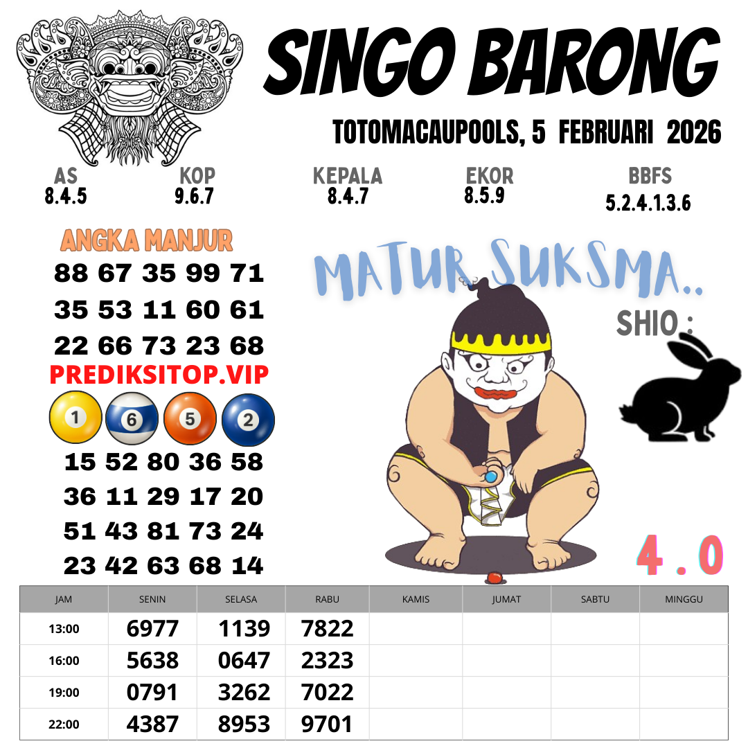 IramaTogel menghadirkan syair togel Toto Macau yang bisa anda gunakan sebagai media prediksi togel dengan akurat di Indonesia. Hal ini tersampaikan, para pemain yang bermain togel Toto Macau akan dipermudah untuk bisa menebak angka togel Toto Macau dari syair togel ini. IramaTogel telah memperhitungkan banyak fitur yang dapat mendukung untuk bisa menebak angka togel Toto Macau dengan benar. Maka dari itu silahkan untuk berlangganan dengan kami buat mendapatkan banyak bocoran nomor keluaran togel Toto Macau disini.