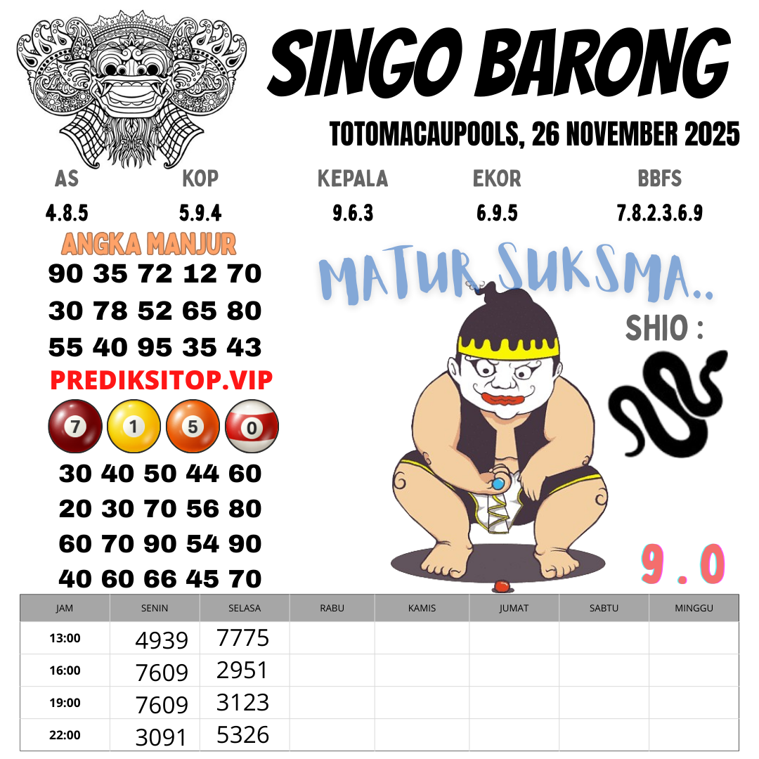 IramaTogel menghadirkan syair togel Toto Macau yang bisa anda gunakan sebagai media prediksi togel dengan akurat di Indonesia. Hal ini tersampaikan, para pemain yang bermain togel Toto Macau akan dipermudah untuk bisa menebak angka togel Toto Macau dari syair togel ini. IramaTogel telah memperhitungkan banyak fitur yang dapat mendukung untuk bisa menebak angka togel Toto Macau dengan benar. Maka dari itu silahkan untuk berlangganan dengan kami buat mendapatkan banyak bocoran nomor keluaran togel Toto Macau disini.